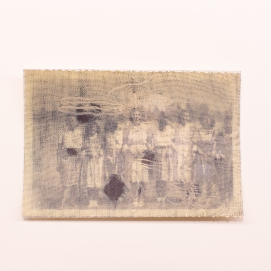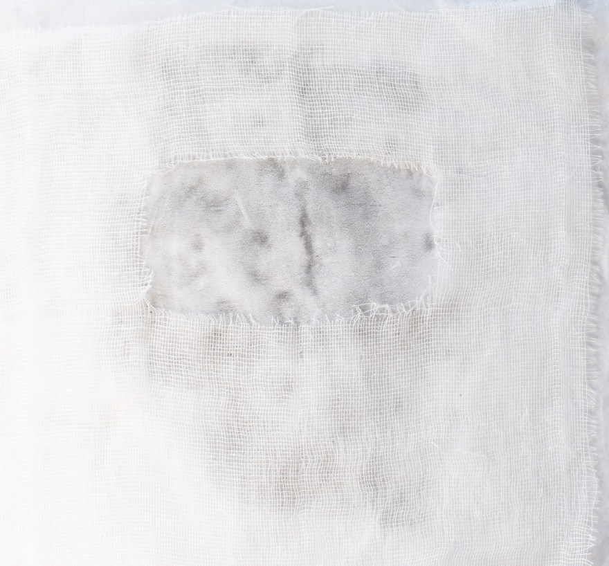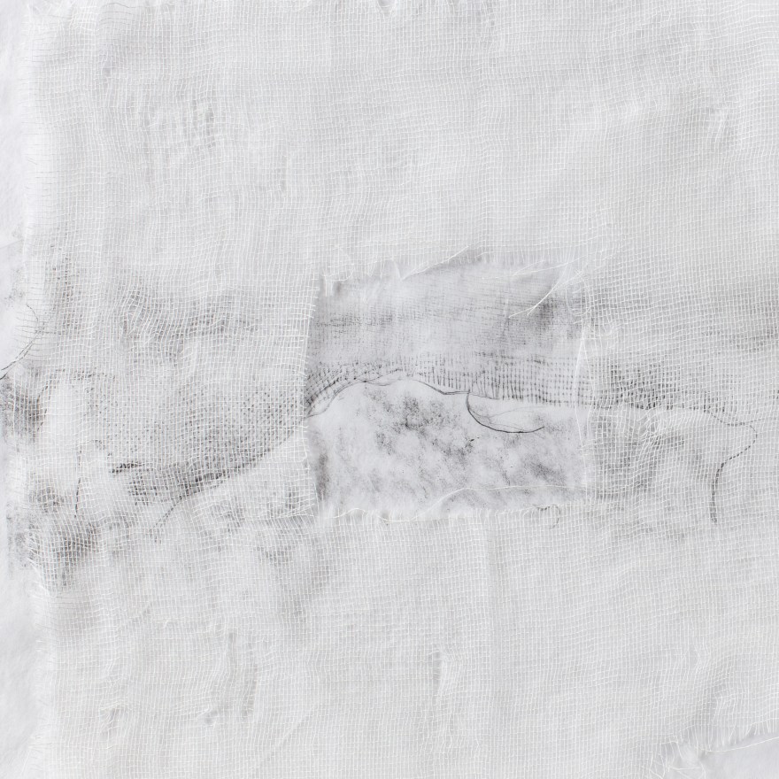 In mijn atelier lichtte ik met doek en gaas die plaatsen in het textiel uit waar herstellingen of slijtage te zien waren, om ze vervolgens te fotograferen, als waren het eigen wonden; de kleine afmetingen dienen de intimiteit van het onderwerp.